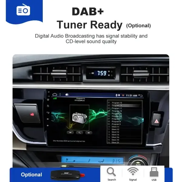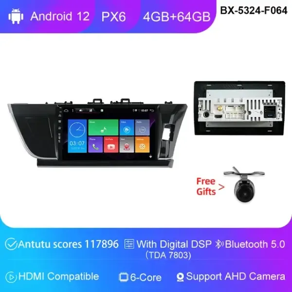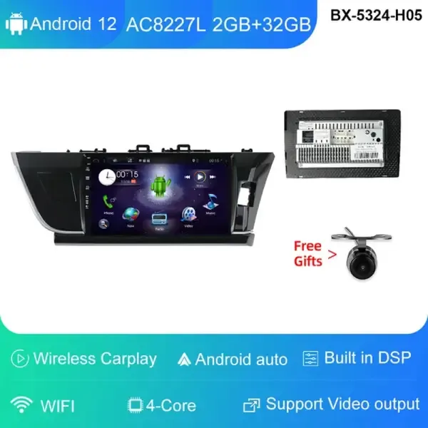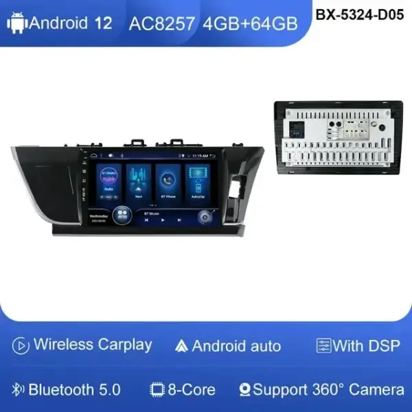 10" Android 12 Player Carplay Car Head Unit Radio Stereo Multimedia GPS DVD 4G Wifi 4+64GB Compatible With Toyota Corolla Altis RHD 2014/2015/2016