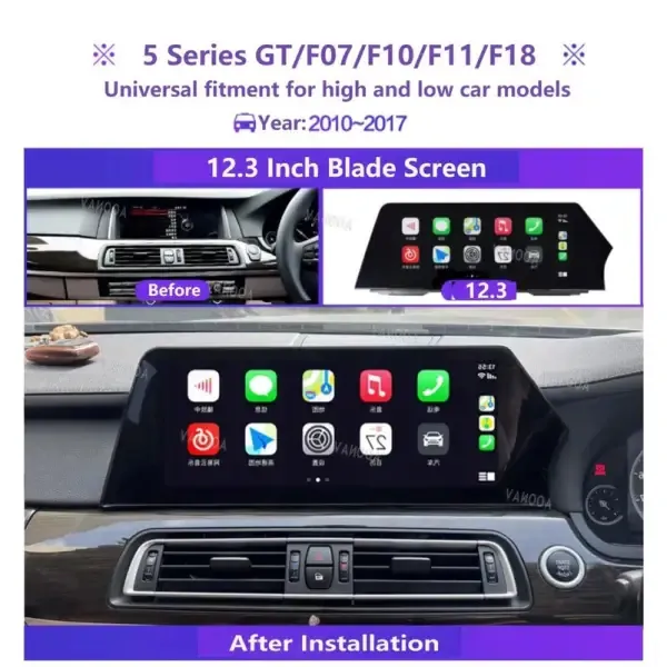 Compatible With Bmw 5 Series F10 2010-2013 Cic 12.3 Inch Multimedia Infotainment Wireless Android Touch Blade Cut Blue Ray Player Carplay Android Auto 4 Gb Ram 16gb Storage CIC