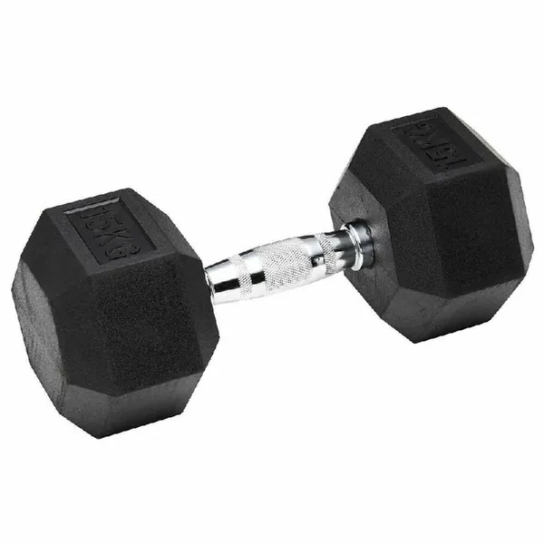 Hexagonal dumbbell 15kg rubber-coated