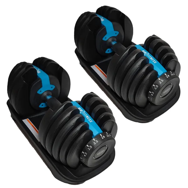Introducing the 1818 Fitness Adjustable Dumbbell Pair, a versatile tool for strength training. These dumbbells offer smaller weight increments, allowing for gradual progress suitable to your needs. With a wide range of weights available, you have access to various exercises, enhancing your workout program and facilitating progression.