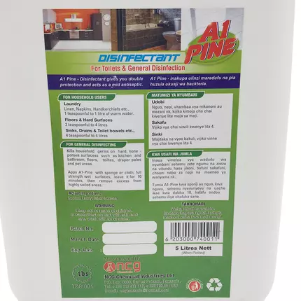 Tumia A1-Pine kwa sponji au nguo, kwa nguvu, sehemu nyevunyevu na uache ikae dakika 10, halafu ondoa sehemu iliyo chafuka sana.