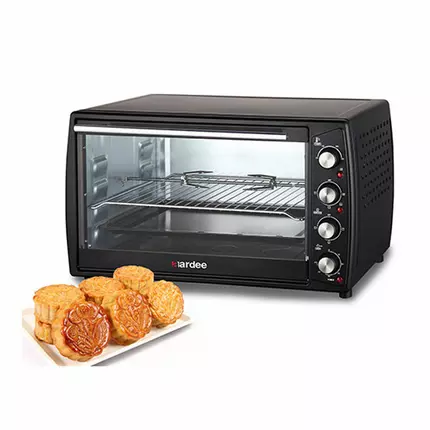 S pecifications: Inner lamp to watch food being cooked without heat loss Variable temperature up to 250OC 2 stage selector for rotisserie & 4 stage selector for heating 60 minutes timer with auto shut-off bell at the end of cooking time Convection helps to maintain even temperature in the cavity High quality stainless steel heating elements Three rack positions for flexibility in cooking Accessories: non-stick bake tray (1), wire rack (1), tray handle (1), roasting fork (1), fork handle (1) Motorized rotisserie Cool touch door handle Chamber ligh