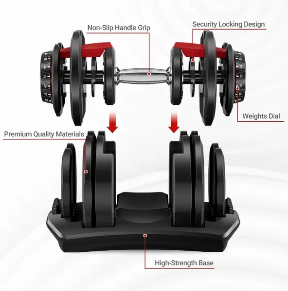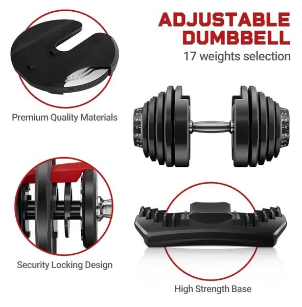 Space-Saving Design:Replace multiple traditional dumbbells with this compact adjustable set. The sleek design makes it easy to store and perfect for home use, especially where space is limited.