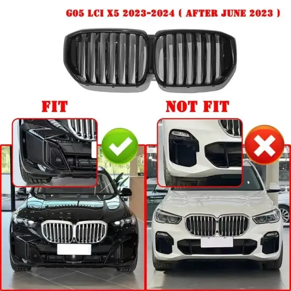 Compatible With Bmw X5 Lci G05 2023+ Aero Knight Front Bumper Single Line Show Grill Glossy Black