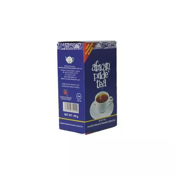 Experience the essence of Tanzania's rich tea heritage with African Pride Tea, a perfect blend crafted from the finest tea leaves of the region. This exceptional tea offers a harmonious combination of bold flavors and exquisite aromas, capturing the unique terroir of Tanzania. Indulge in the warmth and richness of African Pride Tea, a celebration of Tanzania's finest tea tradition. Whether enjoyed alone or shared with others, this blend invites you to savor the distinctive flavors that make Tanzanian tea truly exceptional.