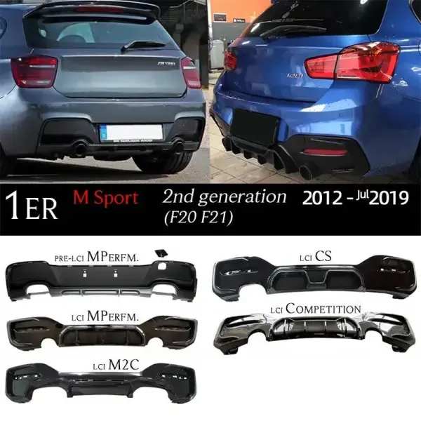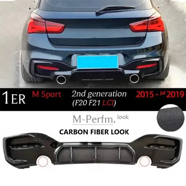Compatible With Bmw 1 Series F20 Lci 2015-2019 After Rear Lip Diffuser Rear Diffuser F20 Lci After Lip Carbon Fiber Look Mp 0-0 Dual Side Single