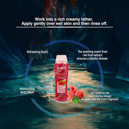 Wake up and start your day. By unleashing the foam with our new collection of shower gels to wake up fresh, we present the new Amalfi Red Fruits Shower Gel. Get ready for the most intense shower wrapped with the fresh fragrances. Watch the unique gel transform your shower experience leaving you fresh every day. Pour a drop of the fresh shower gel and gently lather with a pouf. Massage all over your body to let your lather revive your senses every day. The ingredients in Amalfi shower gel gives you a thick lather which lends a sense of freshness after every shower and makes bathing an enjoyable experience. Amalfi shower gel gives you a fragrance which not only lasts the whole day long but also keeps your skin healthy, it ensures that your skin gets the best care and stays fresh after every wash. How to use Amalfi Shower Gel: Squeeze a small amount of shower gel on wet hands. Work into a rich creamy lather. Apply gently over wet skin and then rinse off.