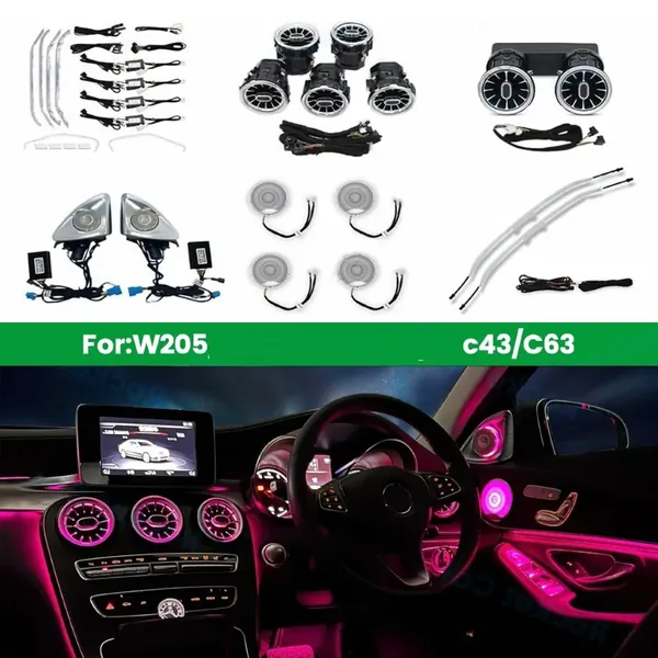 COMPATIBLE WITH MERCEDES C CLASS W205 2015-2022 AMBIENT AMBIANCE LED LIGHT VENTS SPEAKER DECORATIVE INTERIOR KIT 64 COLORS ATMOSPHERE LAMP KITS RHD CAR