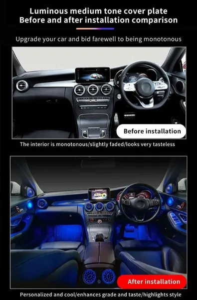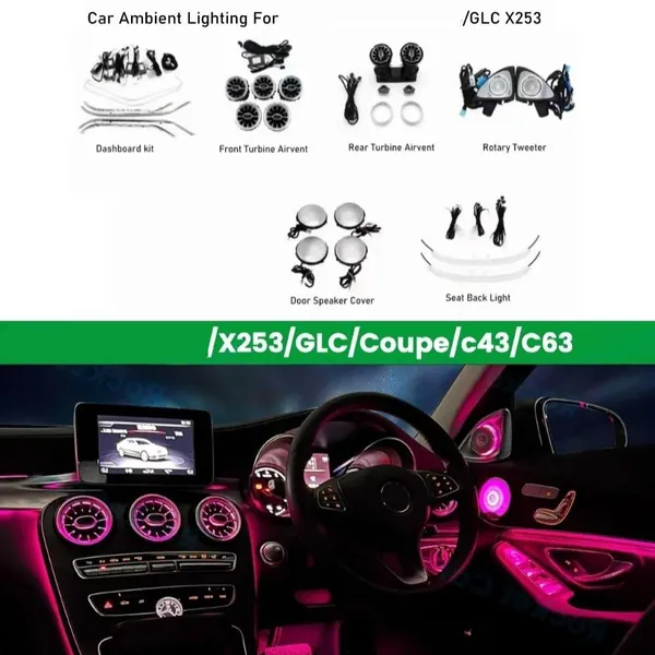 COMPATIBLE WITH MERCEDES GLC W253 X253 X253 2015-2022 AMBIENT AMBIANCE LED LIGHT VENTS SPEAKER DECORATIVE INTERIOR KIT 64 COLORS ATMOSPHERE LAMP KITS RHD CAR 6 IN 1