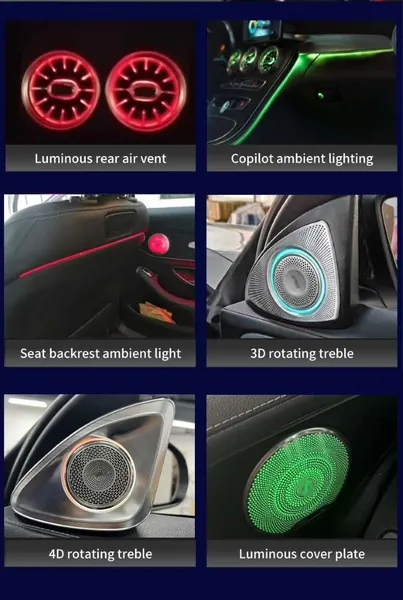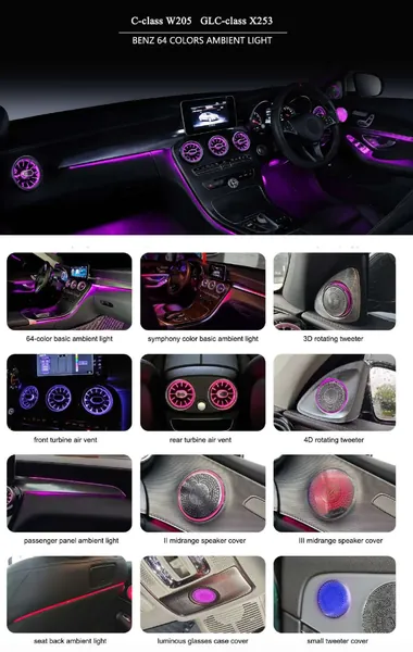 Ambient Ambiance Led Light Vents Speaker Decorative Interior Kit 64 Colors Atmosphere Lamp Kits Rhd Car 7 In 1 CC-8539 Compatible With Mercedes Glc W253 X253 2015-2022