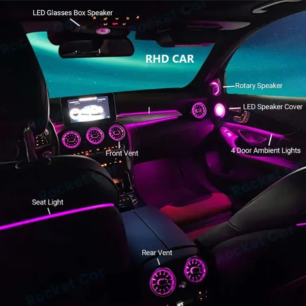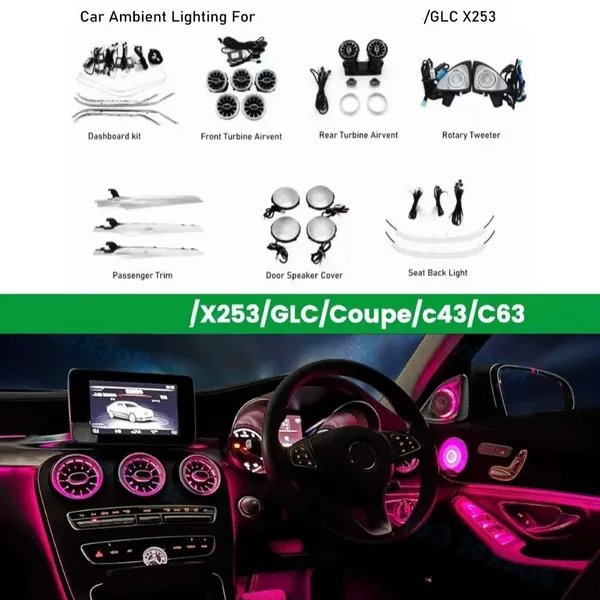 COMPATIBLE WITH MERCEDES GLC W253 X253 X253 2015-2022 AMBIENT AMBIANCE LED LIGHT VENTS SPEAKER DECORATIVE INTERIOR KIT 64 COLORS ATMOSPHERE LAMP KITS RHD CAR 7 IN 1