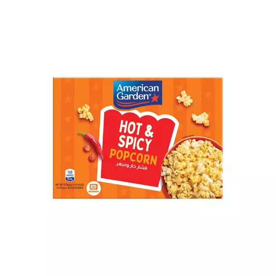 - American Garden Microwave Popcorn Hot & Spicy delivers the perfect combination of authentic popcorn taste with a little hot and spicy kick.