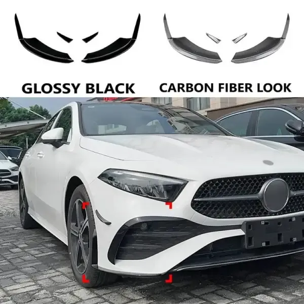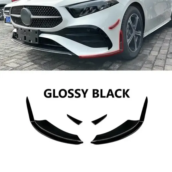 Compatible With Mercedes Benz A Class W177 2018+ Amg Bumper Front Splitter Lip Canards Skirts Flag 4 Part Zst-532bc Zst-113d Glossy Black