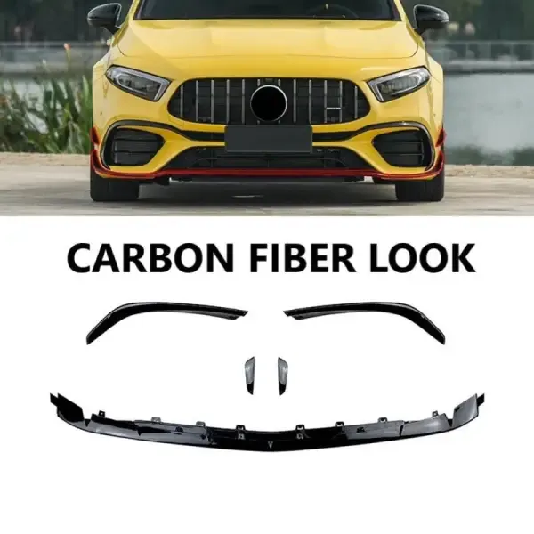 Compatible With Mercedes Benz A Class W177 2018+ Amg Bumper Front Splitter Lip Canards Skirts Flag 5 Part Zst-532a Zst-532bc Zst-113d Carbon Fiber Look