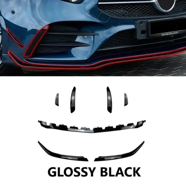 Amg Bumper Front Splitter Lip Canards Skirts Flag 7 Part Zst-266 Glossy Black CC-3750 Compatible With Mercedes Benz A Class W177 2018+