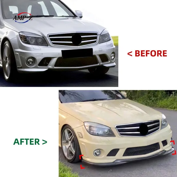 Amg Front Bumper Lip Splitter Diffuser Skirts Flag Canard Carbon Fiber Look Zst-853 ZST-1079 Cf CC-6134 Compatible With Mercedes Benz C Class W204 2007-2010