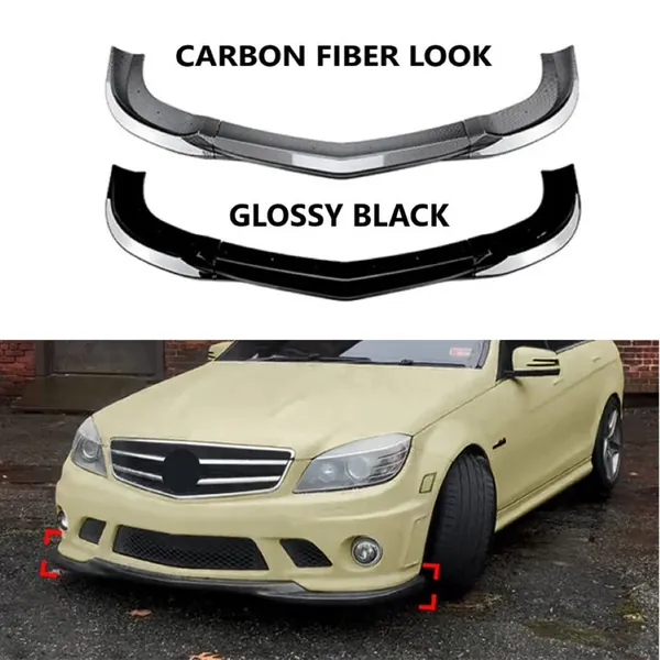 COMPATIBLE WITH MERCEDES BENZ C CLASS W204 2007-2010 AMG FRONT BUMPER LIP SPLITTER DIFFUSER SKIRST FLAG CANARD CARBON FIBER LOOK ZST-853 CF