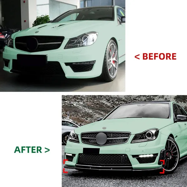 Amg Front Bumper Lip Splitter Diffuser Skirts Flag Canard Carbon Fiber Look Zst-854 Cf CC-6132 Compatible With Mercedes Benz C Class W204 2011-2014