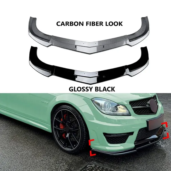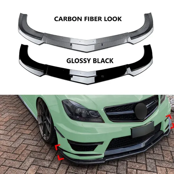 Amg Front Bumper Lip Splitter Diffuser Skirts Flag Canard Glossy Black Zst-854 Gb CC-6131 Compatible With Mercedes Benz C Class W204 2011-2014