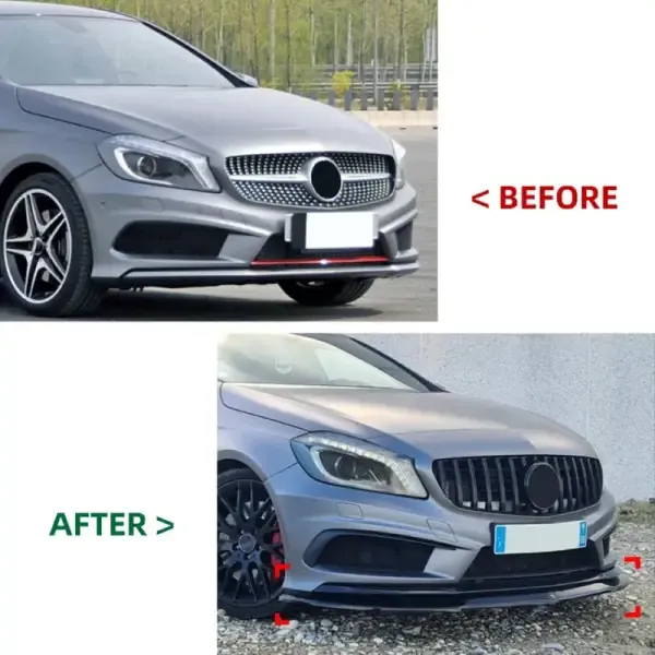 Compatible With Mercedes Benz A Class W176 2013-2018 Amg Front Bumper Lip Splitter Skirt Zst-447 Black Black