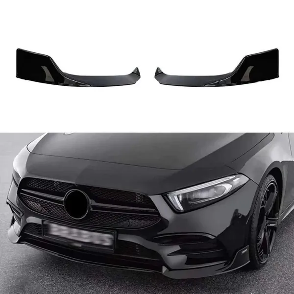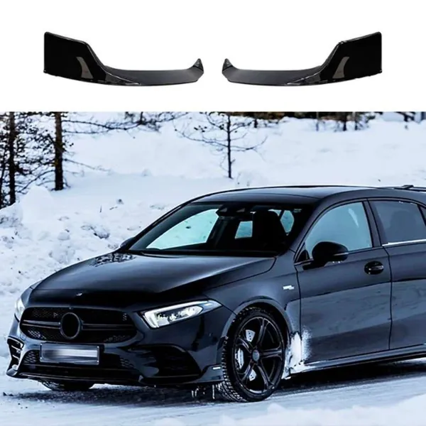 COMPATIBLE WITH MERCEDES BENZ A CLASS W177 2019-2024 AMG FRONT BUMPER LIP SPLITTER SKIRTS BRABUS STYLE AR-BENZ-083 GLOSSY BLACK