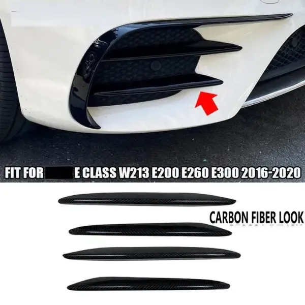 Amg Front Bumper Lip Splitter Skirts Flag Spoiler Carbon Fiber Look Zst-243 Cf CC-4324 Compatible With Mercedes E Class W213 C238 Pre-facelift 2016-2020
