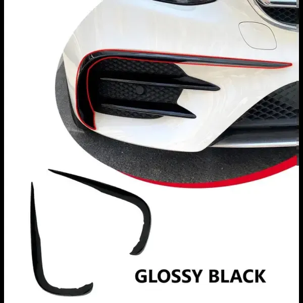 Amg Front Bumper Lip Splitter Skirts Flag Spoiler Glossy Black Zst-228 Gb CC-4321 Compatible With Mercedes E Class W213 C238 Pre-facelift 2016-2020