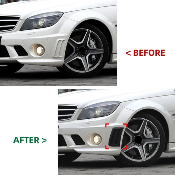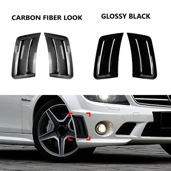 AMG Front Bumper Side Air Vent Splitter Side Skirts Flag Canard Glossy Black Zst-852 Gb CC-6137 Compatible With Mercedes Benz C Class W204 2007-2014