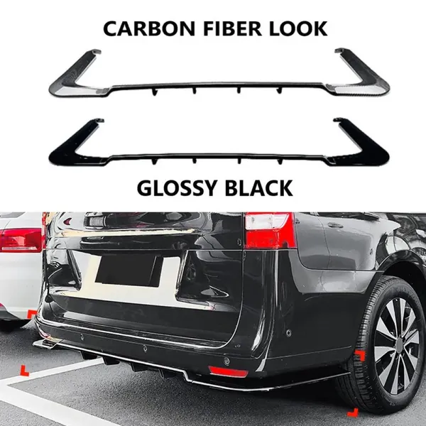 COMPATIBLE WITH MERCEDES BENZ V CLASS VITO W447 2016-2023 AMG REAR BUMPER AFTER LIP DIFFUSER LIP SKIRST SPLITTER FLAG CANARD GLOSSY BLACK ZST-603 GB USA