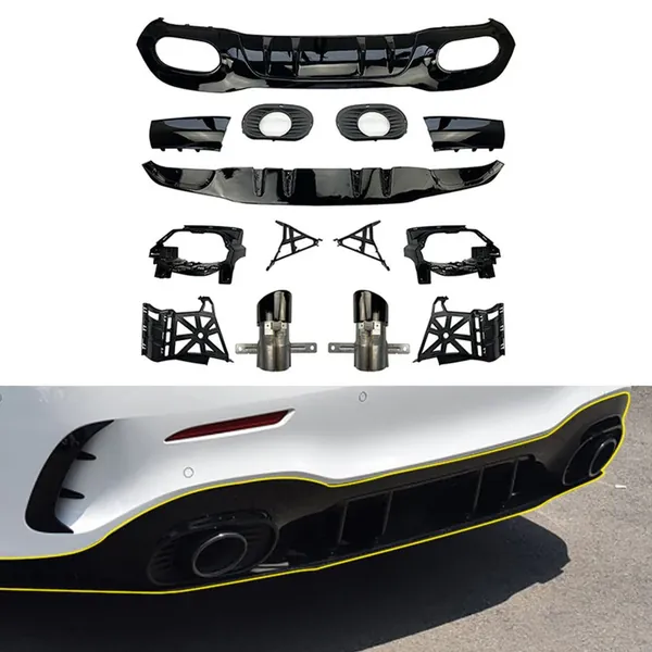 Amg Rear Bumper After Lip Diffuser Lip Skirts Splitter Flag Canard Single Tip Zst-187 CC-6165 Compatible With Mercedes Benz A Class W177 Sedan 2018-2023