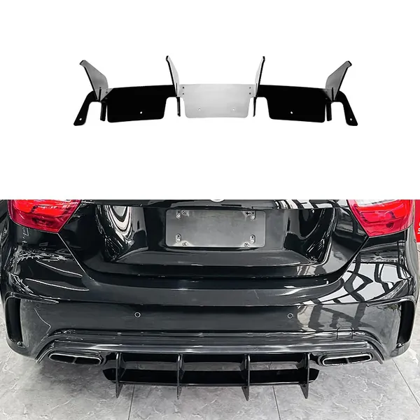 Amg Rear Bumper After Lip Diffuser Lip Skirts Splitter Flag Canard Zst CC-6157 Compatible With Mercedes Benz A Class W176 2012-2018