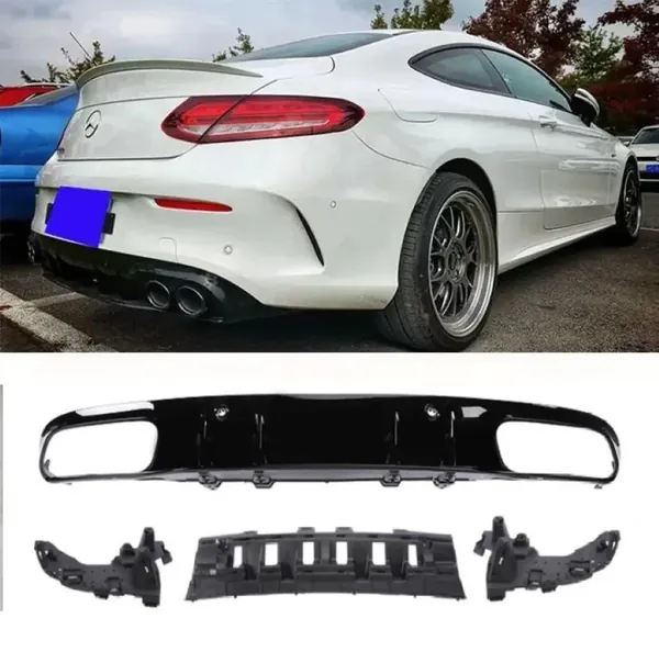COMPATIBLE WITH MERCEDES BENZ C CLASS C205 COUPE 2015-2021 AMG REAR BUMPER UPGRADE CONVERT TO AMG AMG C63 AFTER REAR LIP DIFFUSER BLACK C205-025
