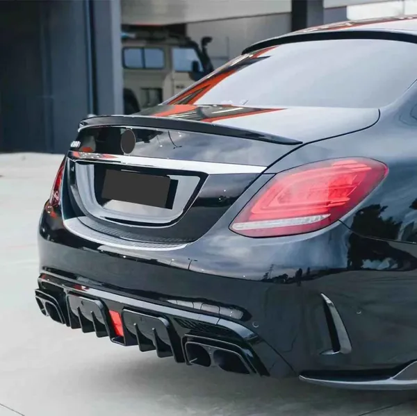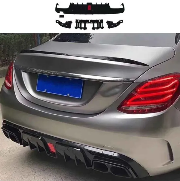 COMPATIBLE WITH MERCEDES BENZ C CLASS W205 2015-2021 AMG REAR BUMPER UPGRADE CONVERT TO AMG AMG C63 AFTER REAR LIP DIFFUSER BRABUS STYLE CARBON FIBER LOOK W205-028-A CF