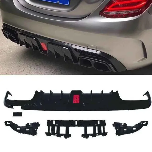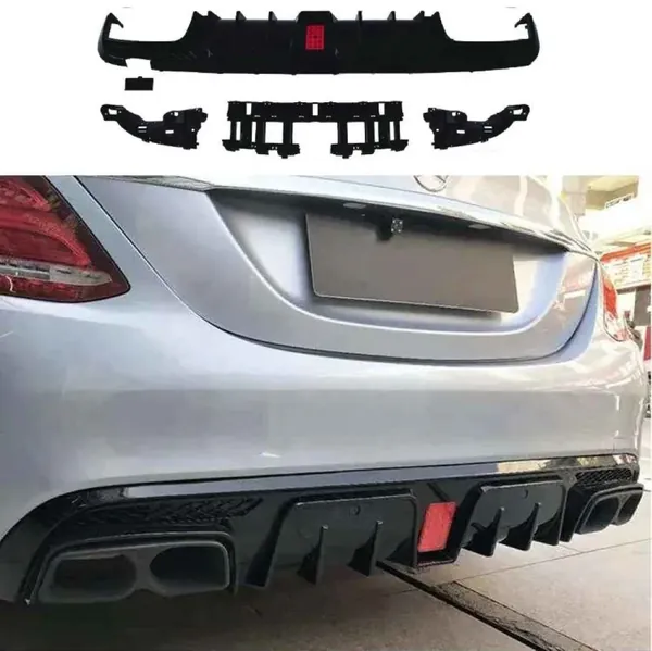 COMPATIBLE WITH MERCEDES BENZ C CLASS W205 2015-2021 AMG REAR BUMPER UPGRADE CONVERT TO AMG AMG C63 AFTER REAR LIP DIFFUSER BRABUS STYLE GLOSSY BLACK GC W205-028 GB