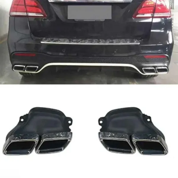 Compatible With Mercedes Benz Gle W166 2016-2019 Amg Rear Bumper Upgrade Convert To Gle63 Amg Exhaust Tip Pipe Dual Silver Chrome Gc