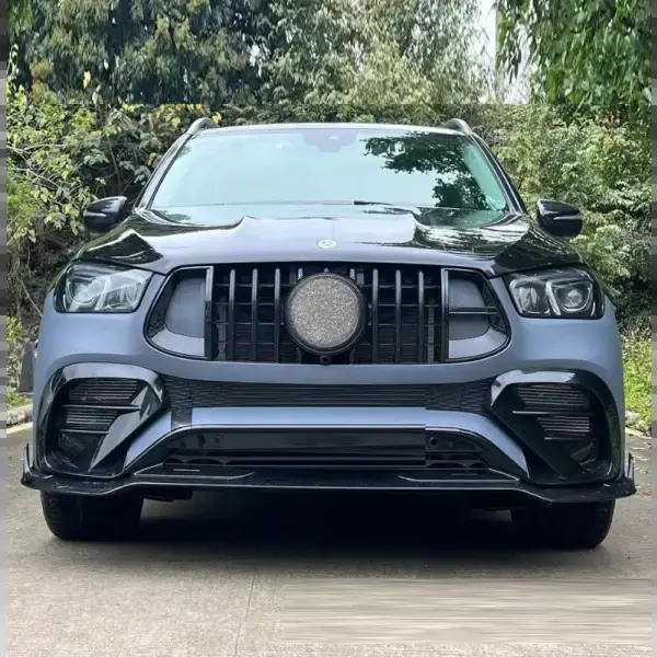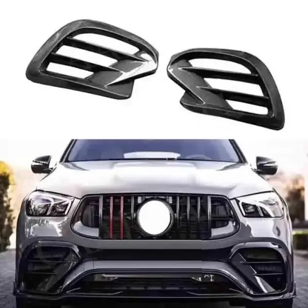 AMG Sports Front Bumper Fog Lamp Light Grill Cover Brabus Style Glassy Black CC-5025 Compatible With Mercedes Gle W167 2019-2024