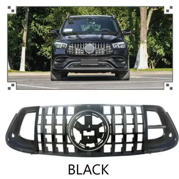 COMPATIBLE WITH MERCEDES GLE W167 2019-2024 AMG SPORTS FRONT BUMPER SHOW GRILL BRABUS STYLE BLACK