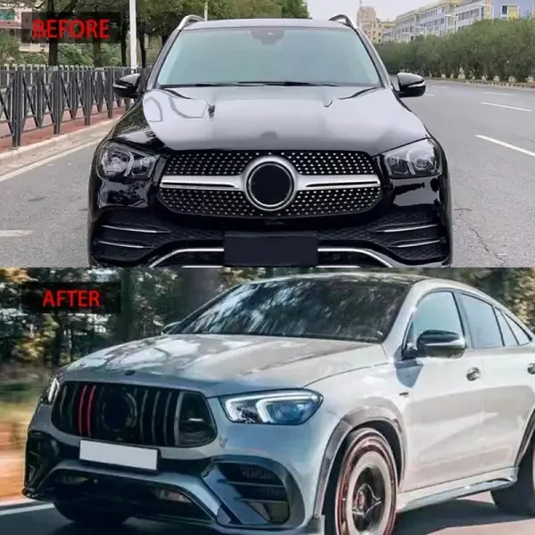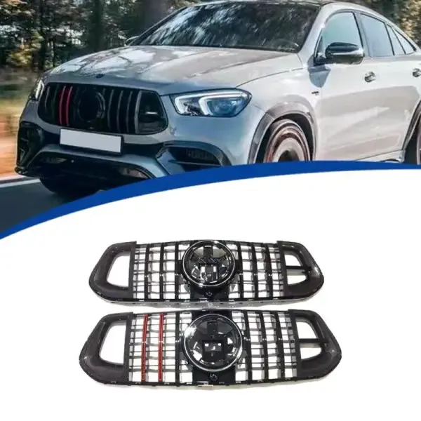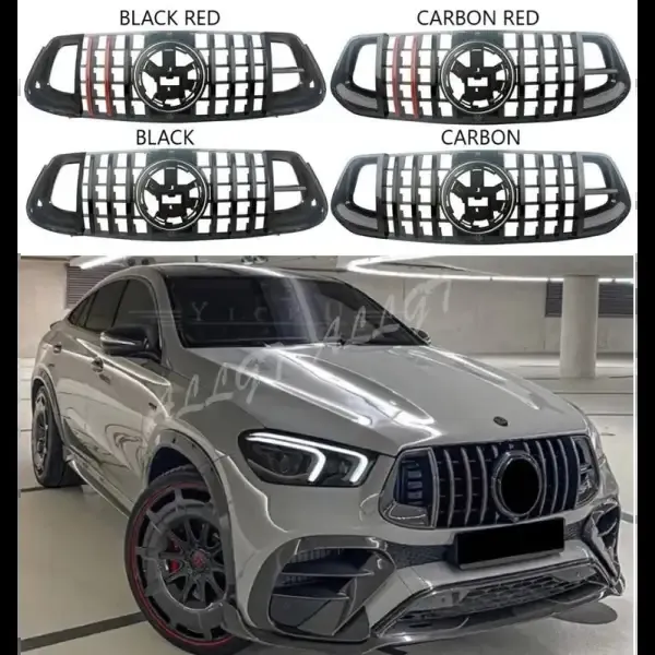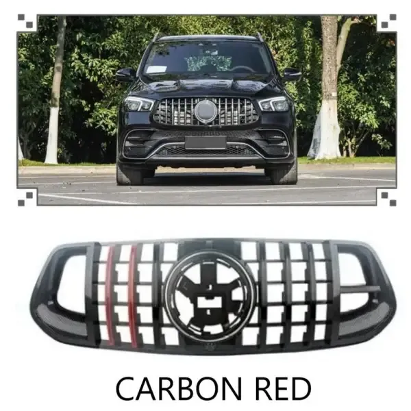 COMPATIBLE WITH MERCEDES GLE W167 2019-2024 AMG SPORTS FRONT BUMPER SHOW GRILL BRABUS STYLE BLACK RED CARBON FIBER LOOK