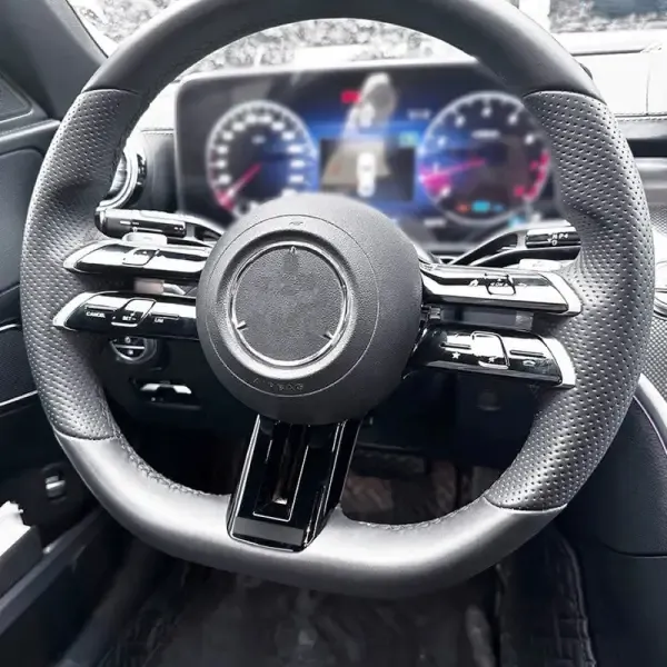 Amg Style Steering Wheel Trim Cover Strip Zst-410 Cf Glossy Black CC-4287 Compatible With Mercedes C Class W206 2022+ E Class W213 2022+ S Class W223 2022+