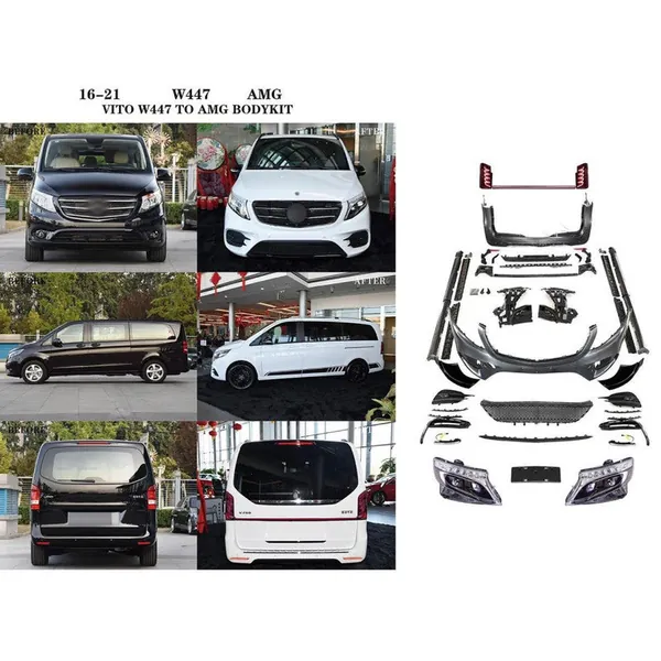 COMPATIBLE WITH MERCEDES BENZ V CLASS VITO W447 2016-2021 TO W447 LCI 2022 AMG UPGRADE FACELIFT CONVERSION BODYKIT BUMPER HOOD HEADLIGHT TAILLIGHT