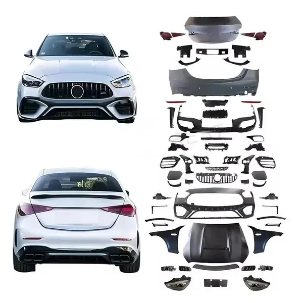 COMPATIBLE WITH MERCEDES BENZ C CLASS W205 2015-2022 TO W206 C63 2023 AMG UPGRADE FACELIFT CONVERSION BODYKIT BUMPER HOOD HEADLIGHT TAILLIGHT