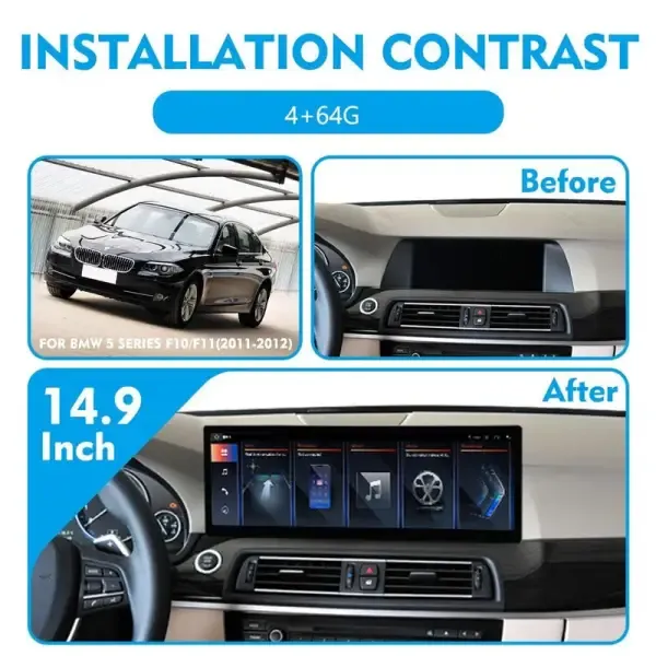 Android 13 4k Qled Touch Screen Carplay Android Multimedia Player Car Gps Navigation Radio 4+64gb Nbt 14.9 Inch CC-4134 Compatible With Bmw 5 Series F10 2010-2017