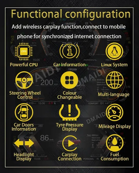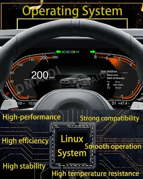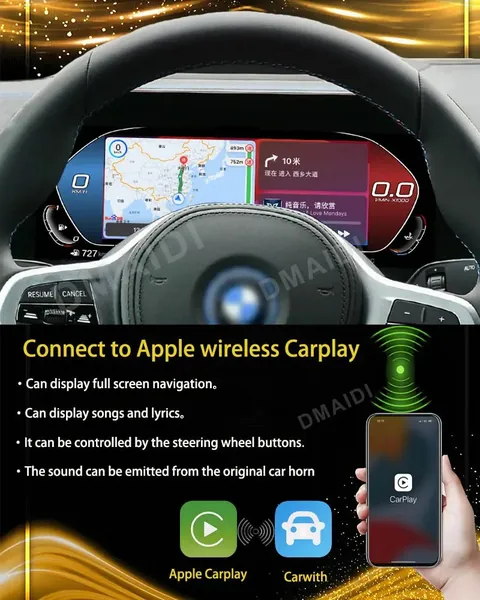 Android Digital Instrumental Cluster Speedometer With Carplay Compatible With BMW 1 2 3 4 5 6 7 X1 X3 X4 X5 X6 X7 Z4 F10 F20 F30 F34 F12 F02 F48 F25 F26 F15 F16 E60 E70 E90 E84 E89