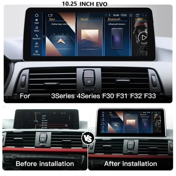 COMPATIBLE WITH BMW 3 SERIES F30 F34 2016-2018 4 SERIES F32 2016-2018 ANDROID MULTIMEDIA INFOTAINMENT TOUCHSCREEN DVD PLAYER 4GB+64GB 12.25 INCH EVO