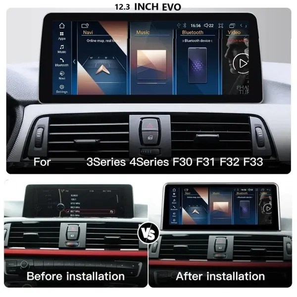 COMPATIBLE WITH BMW 3 SERIES F30 F34 2016-2018 4 SERIES F32 2016-2018 ANDROID MULTIMEDIA INFOTAINMENT TOUCHSCREEN DVD PLAYER 4GB+64GB 12.3 INCH EVO