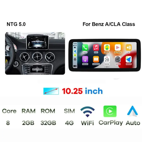 Android Multimedia Infotainment Touchscreen Dvd Player Carplay Android Auto 4gb +64gb 10.25 Inch Ntg 5.0 CC-6595 Compatible With Mercedes Benz A Class W176 2013-2019 Cla W117 2013-2019 Gla W156 2013-2