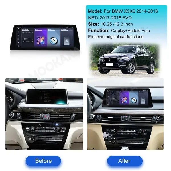 COMPATIBLE WITH BMW X5 F15 F85 X6 F16 2014-2018 ANDROID MULTIMEDIA INFOTAINMENT TOUCHSCREEN DVD PLAYER WIRELESS CARPLAY ANDROID AUTO 4GB +64GB 12.3 INCH EVO