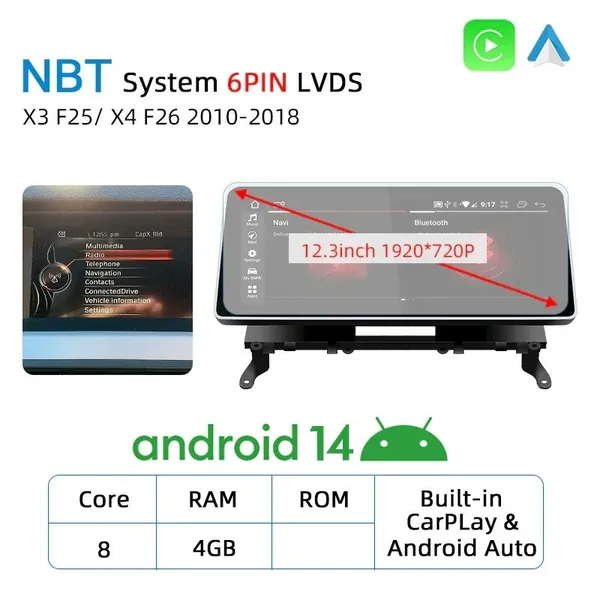 Android Multimedia Infotainment Touchscreen Dvd Player Wireless Carplay Android Auto 4gb +64gb 12.3 Inch Nbt CC-7318 Compatible With Bmw X3 X4 F25 F26 2010-2017