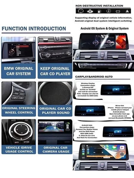 COMPATIBLE WITH BMW X5 F15 F85 X6 F16 2014-2018 ANDROID MULTIMEDIA INFOTAINMENT TOUCHSCREEN DVD PLAYER WIRELESS CARPLAY ANDROID AUTO 4GB +64GB 12.3 INCH NBT