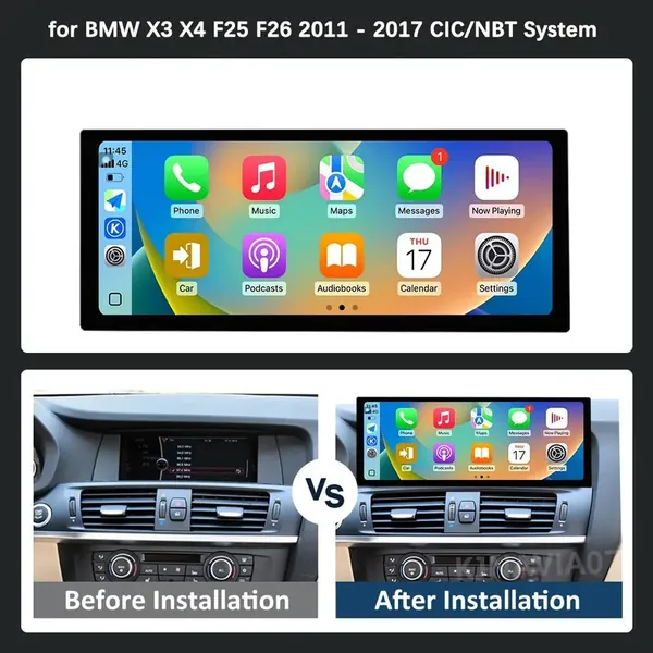 COMPATIBLE WITH BMW X3 X4 F25 F26 2010-2017 ANDROID MULTIMEDIA INFOTAINMENT TOUCHSCREEN DVD PLAYER WIRELESS CARPLAY ANDROID AUTO 4GB +64GB 12.8 INCH NBT